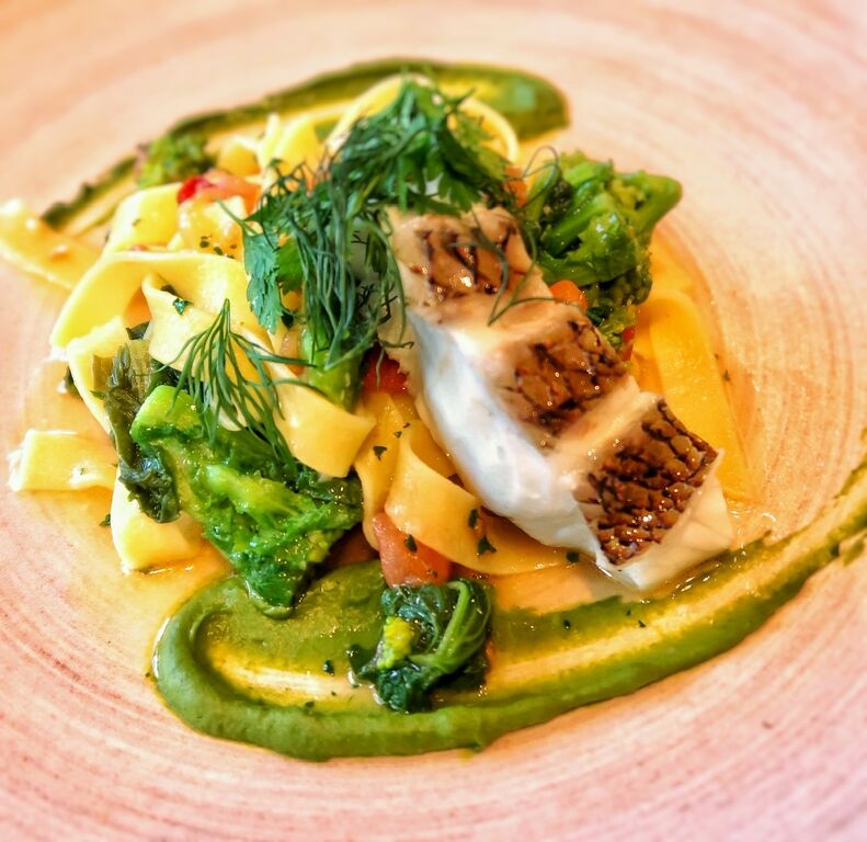 ●サフランを練り込んだタリアテッレ 真鯛のヴァポーレと菜の花のソース