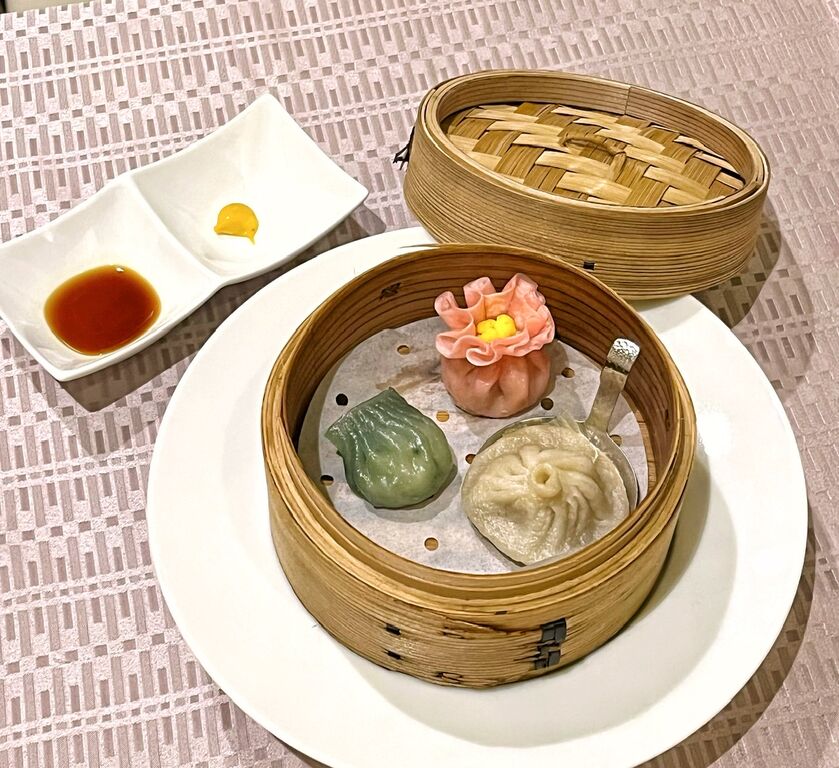 小籠包・翡翠餃子・薄紅花咲き包み蒸し