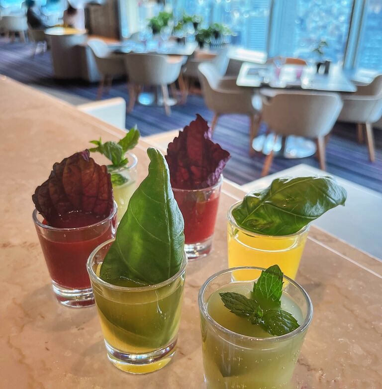 ハーブにマンゴーやクランベリー、ジンジャービアなどを合わせたデモンストレーション用のものですが、もしタイミングが合えば、クリエイティブなミクソロジスト、マネージャーのセバスチャン・ヴィゲラ氏が作ってくれるかも♪