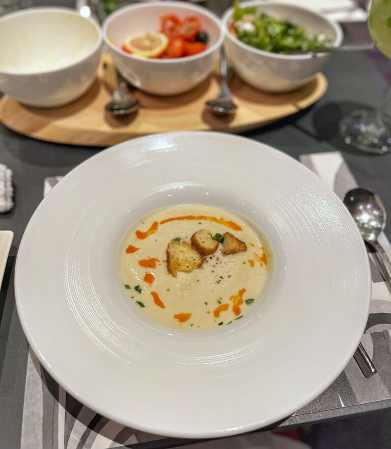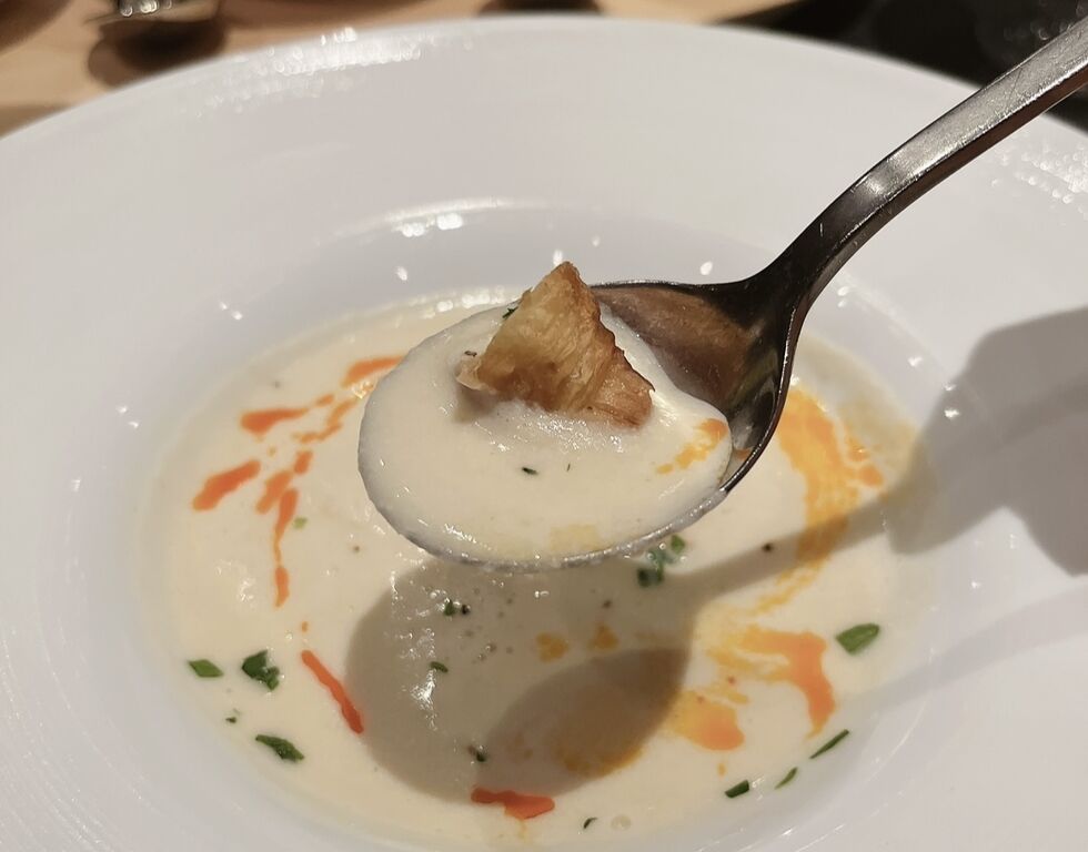 甲殻類の濃厚でクリーミーなビスクソースが最高。グラナ・パダーノチーズがたっぷり。