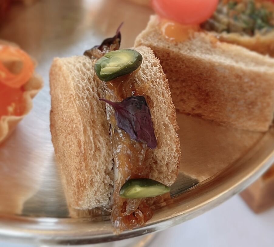 ・クリスピーサンドウィッチ テリーヌ・ド・カンパーニュ、玉ねぎのコンポート、ピスタチオ、紫蘇