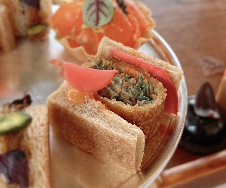 レンズマメや季節のお野菜を使ったフライをはさんだトーストサンド。