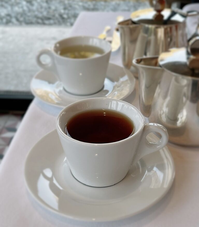 紅茶などは無料で種類を変えておかわり自由。別料金でシャンパンなどもいただけます。