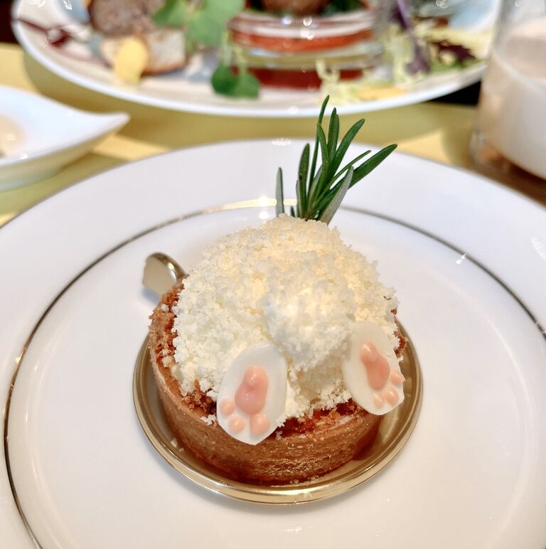 カスタードクリームとスポンジ詰まったタルトに、尻尾がマスカルポーネでできたうさぎ。土の中にもぐったうさぎのイメージだそうです。