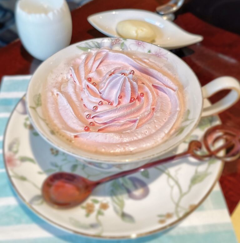 いちごの甘い香りのロンネフェルト「ストロベリー・フィールド」にストロベリークリームをバラのように絞ったウインナーティー。