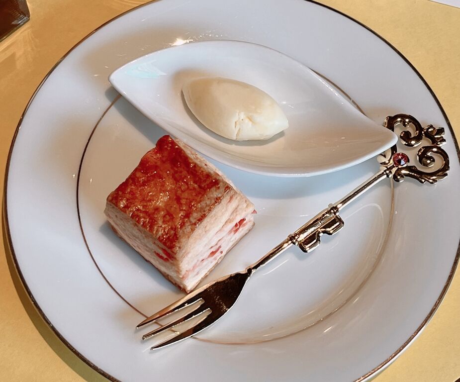 スコーンにはドライいちごをヨーグルトで戻したものとチーズが練り込まれていて、このまま食べても美味しい〜💗ジャムなし、コンフィチュールはお好みで。