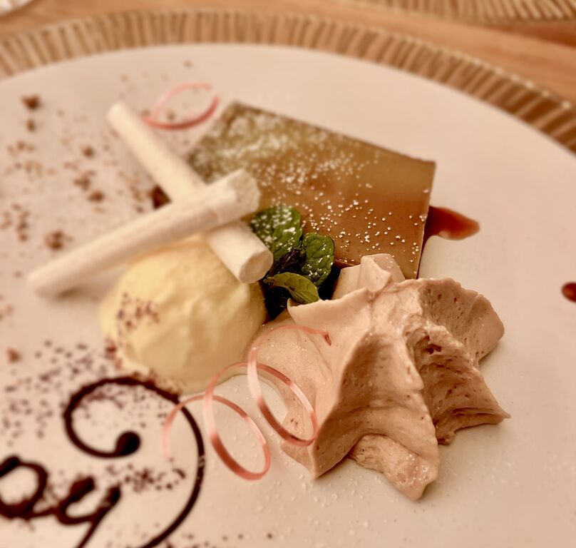 ・ピスタチオのプリン栗のエスプーマとバニラジェラート