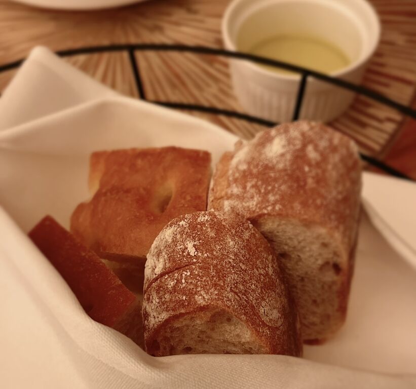 フォカッチャとバゲット、エキストラバージンオリーブオイル。