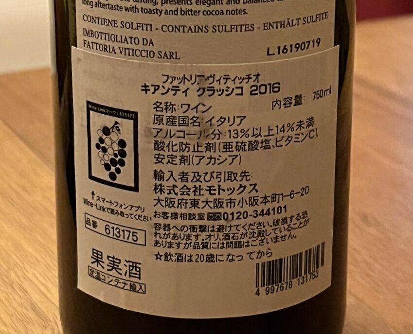 ファットリア ヴィティッチオ キャンティクラシコ 1,800円