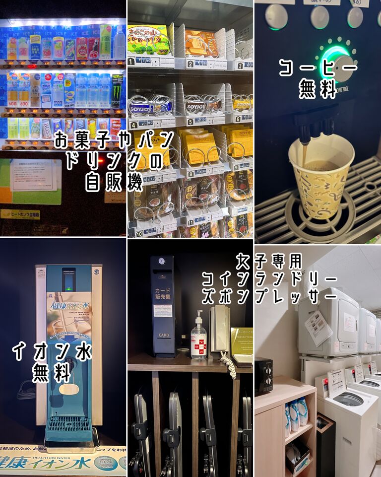 アメニティバーに基礎化粧品もあるし、コーヒーやイオン水も無料で、何も買わなくて済みました👍