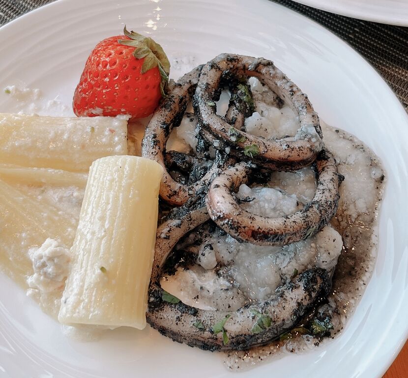 烏賊のガーリックソテーと白ポレンタ·