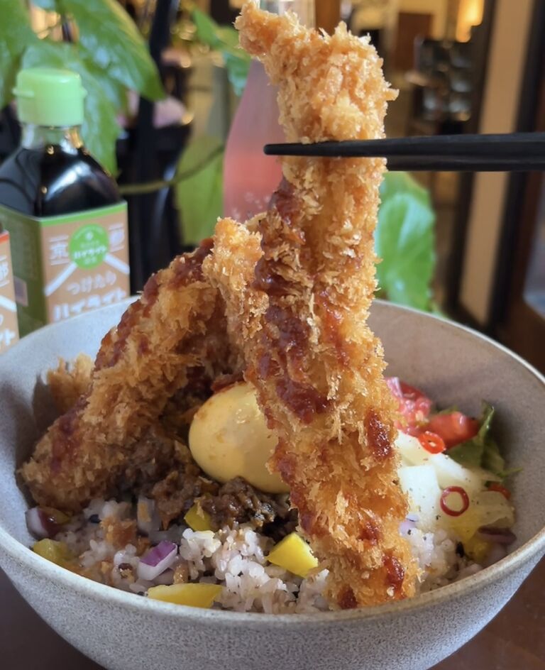 長いチキンカツを豪快にそびえ立たせた映えビジュアル😍👏