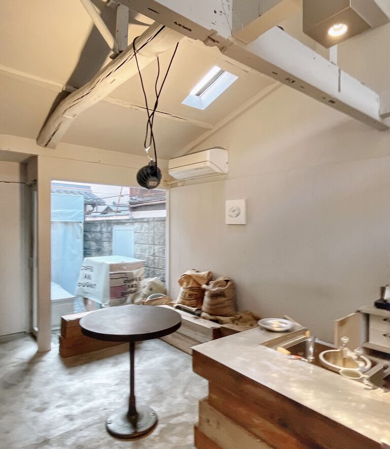町家をリノベしていて、床にコーヒーを混ぜたりして、スタイリッシュだけど温かみのある空間。