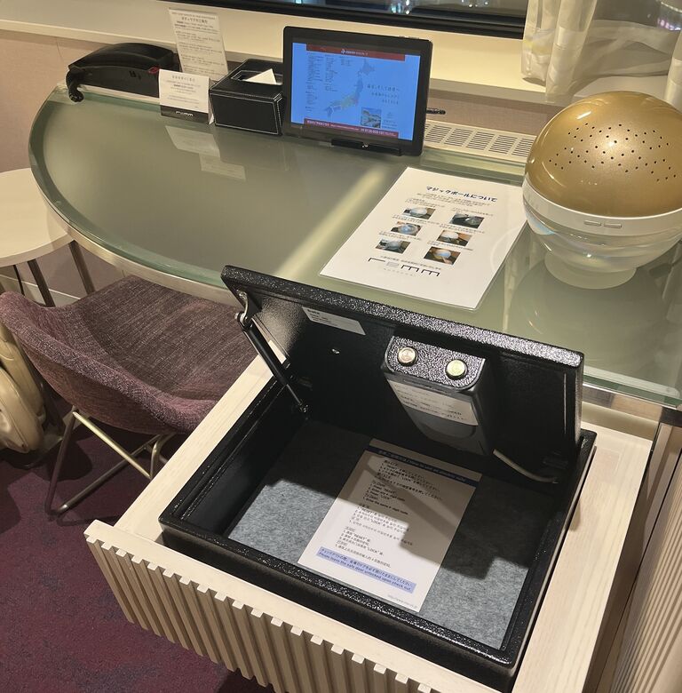 引き出しを開けるとセイフティボックス。本格的な大きさ。