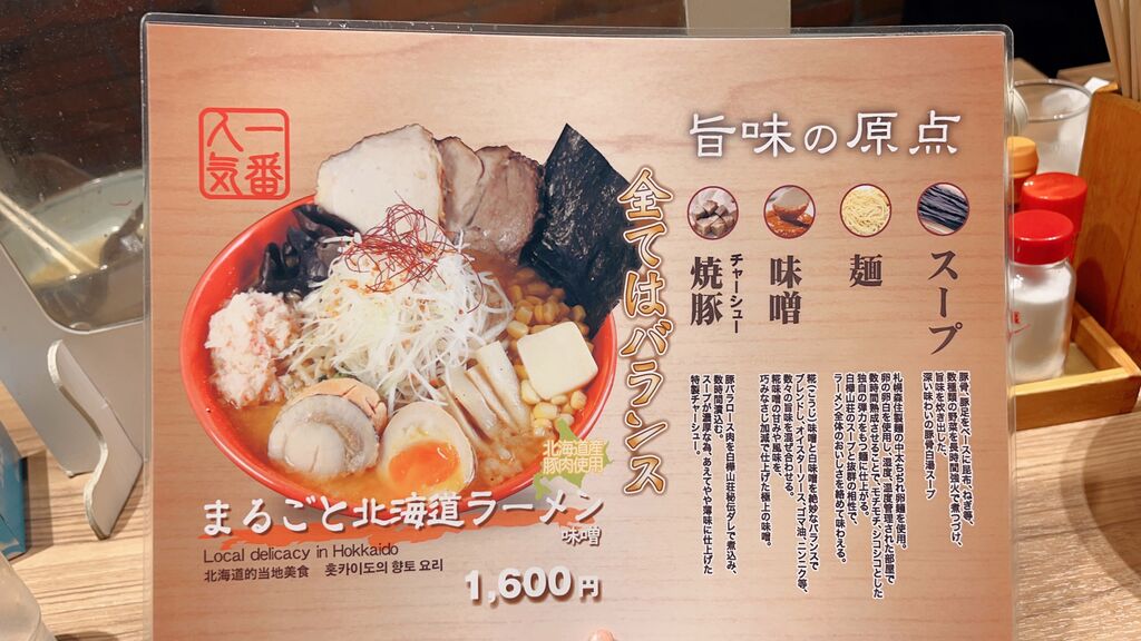 一番人気は、ほたてやコーンバターなど、北海道グルメをなぞるこのラーメン。