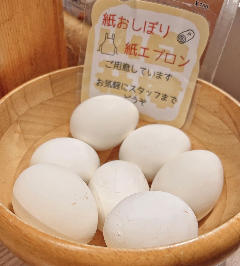 席に着くと、卓上のボウルにゆで卵が置いてありました。