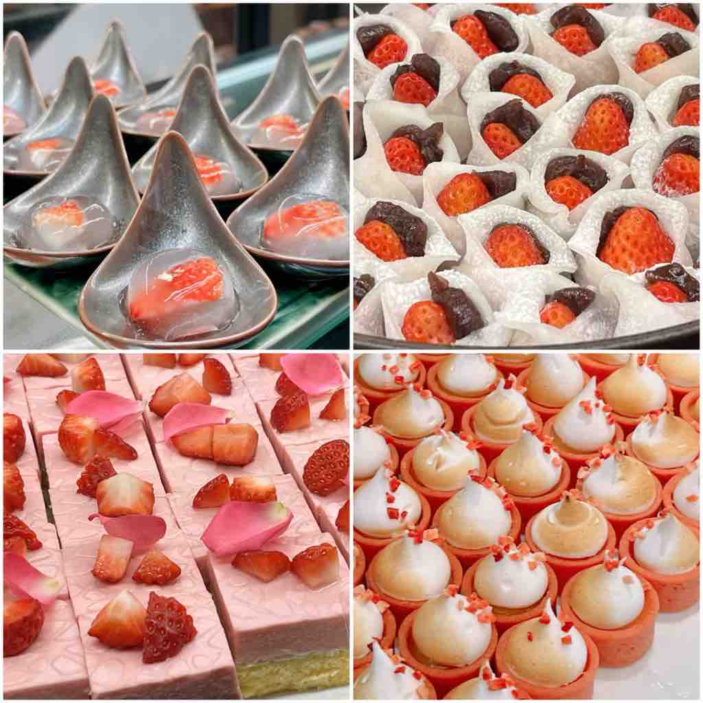イチゴ葛餅、イチゴ大福、イチゴとローズのムース、イチゴのレモンタルト