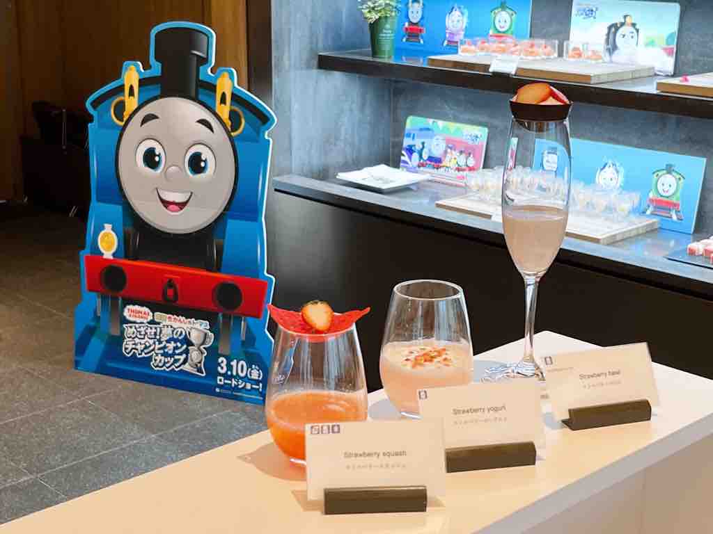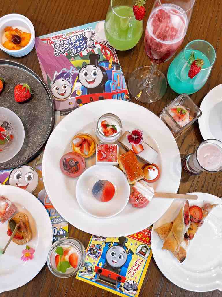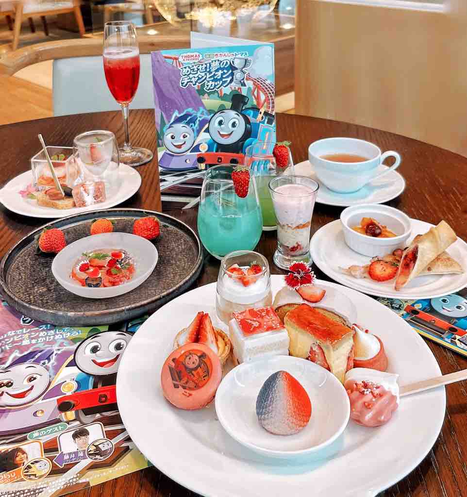 「映画 きかんしゃトーマス めざせ!夢のチャンピオンカップ」 とコラボレーションのストロベリーアフタヌーンブッフェがいただけます。