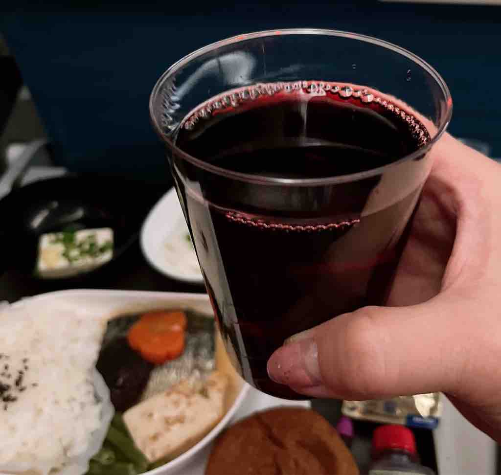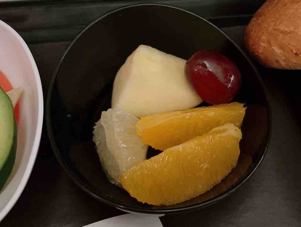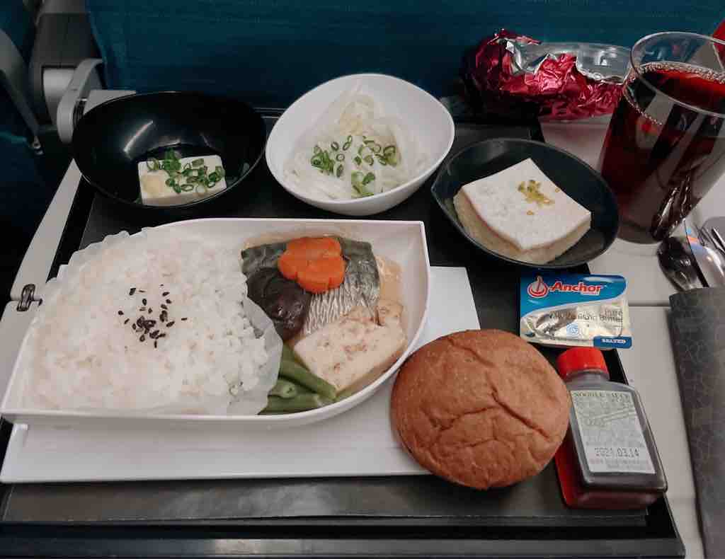 エコノミー席だけど、3人並びの通路側席で、まんなかが誰もいなかったからゆったりできました。