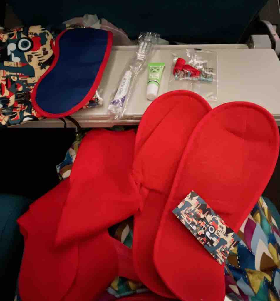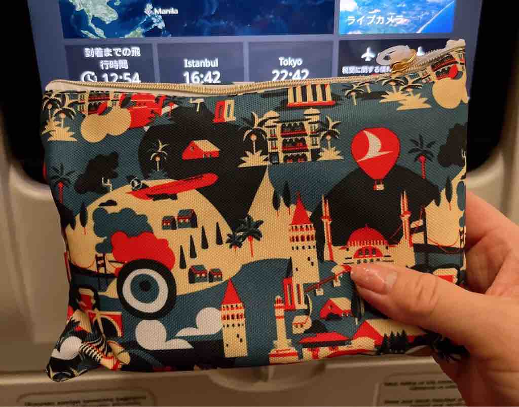 スリッパは機内で使って捨てて帰りましたが、そのほかは持ち帰り、ポーチなど旅の記念になりました。