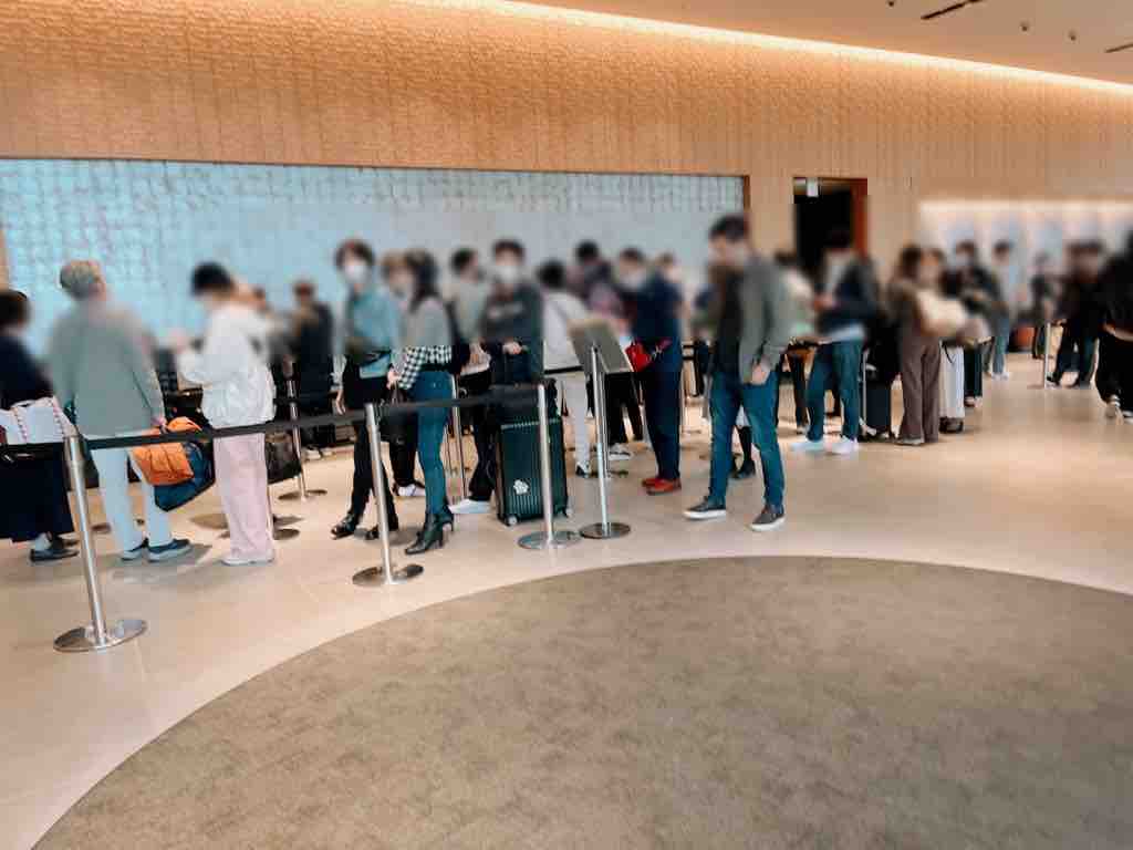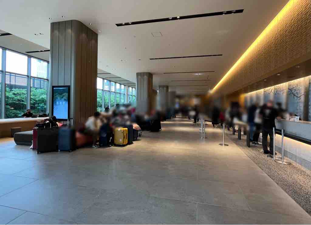 チェックイン時刻となりロビーに人がたくさん並び始めました。