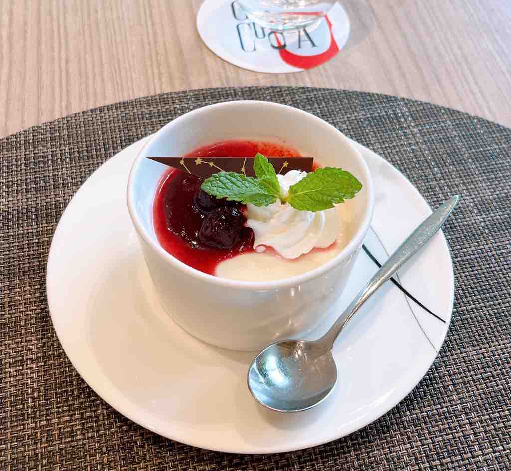 本日のドルチェは「ヨーグルトムース、ベリーソース」