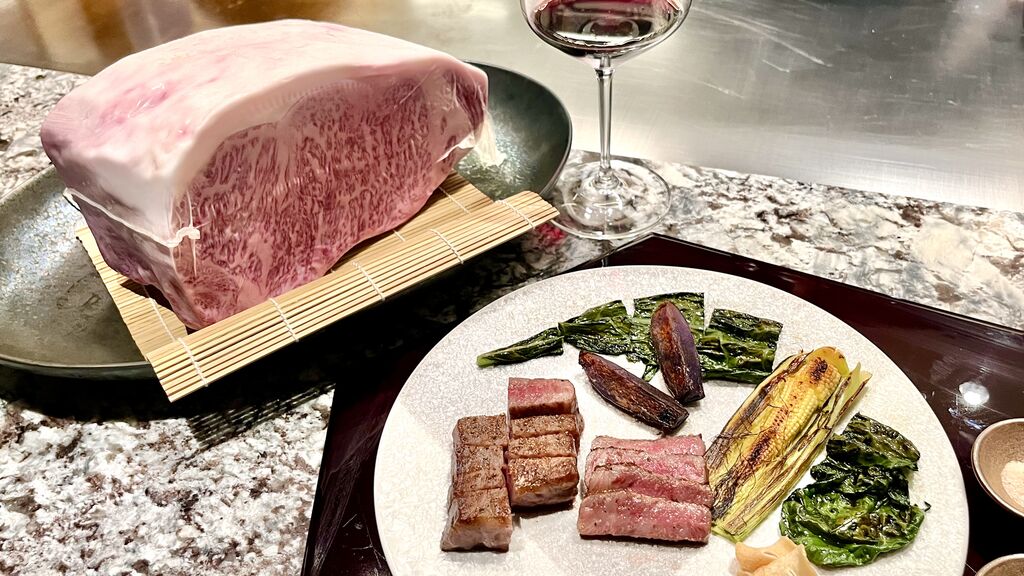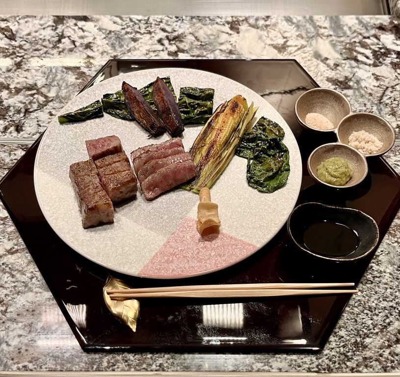 品川駅直結のホテル「ストリングスホテル東京インターコンチネンタル」の26階、鉄板焼きの「風音(かざね)」でディナーをいただきました。