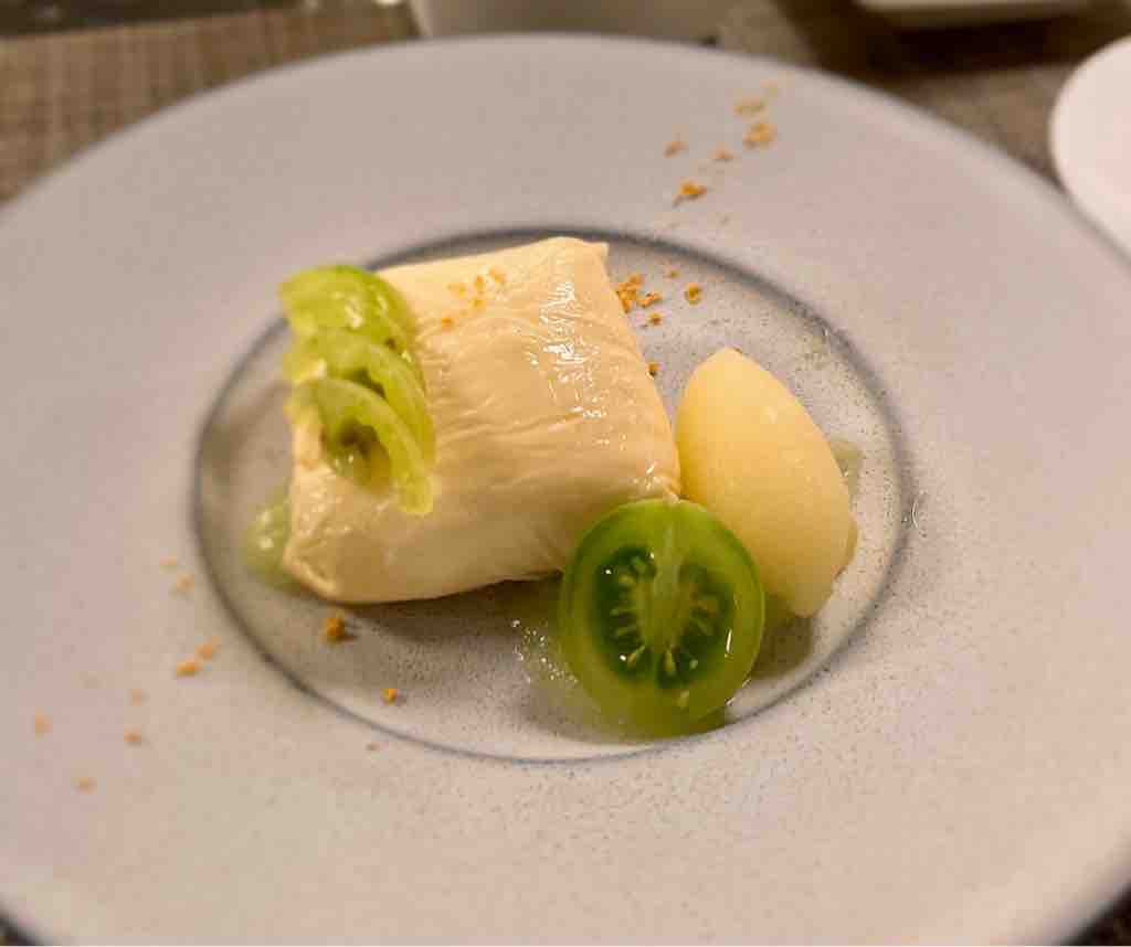 クレームダンジュ 湯葉とトマトのクーリ 柚子ソルベ