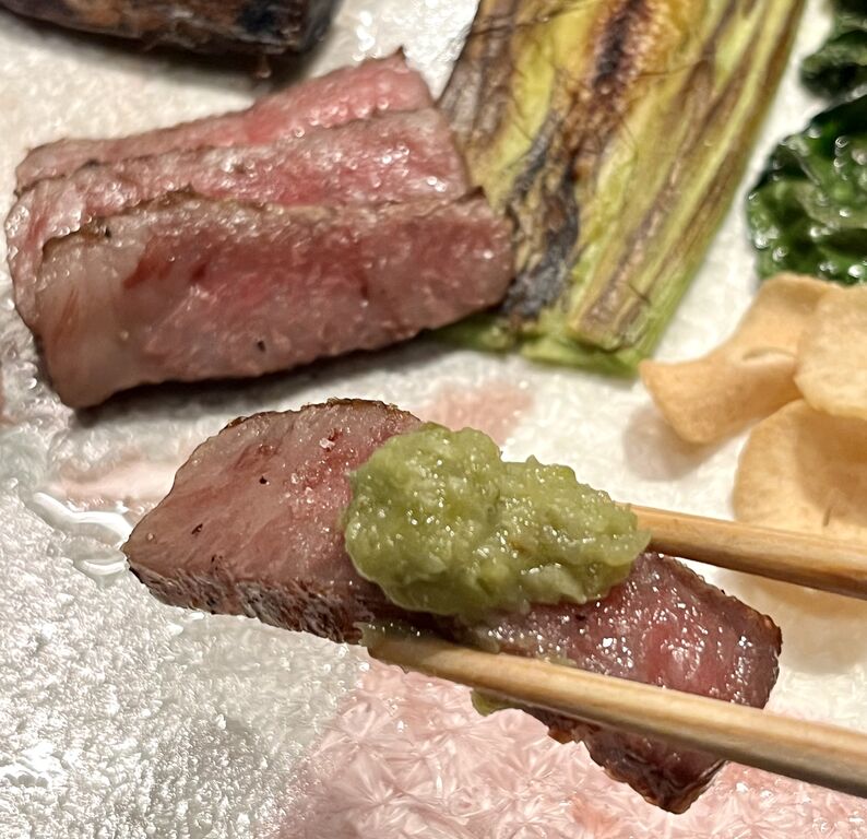 お肉の脂とたっぷりのわさびは溶け合うのよね~。