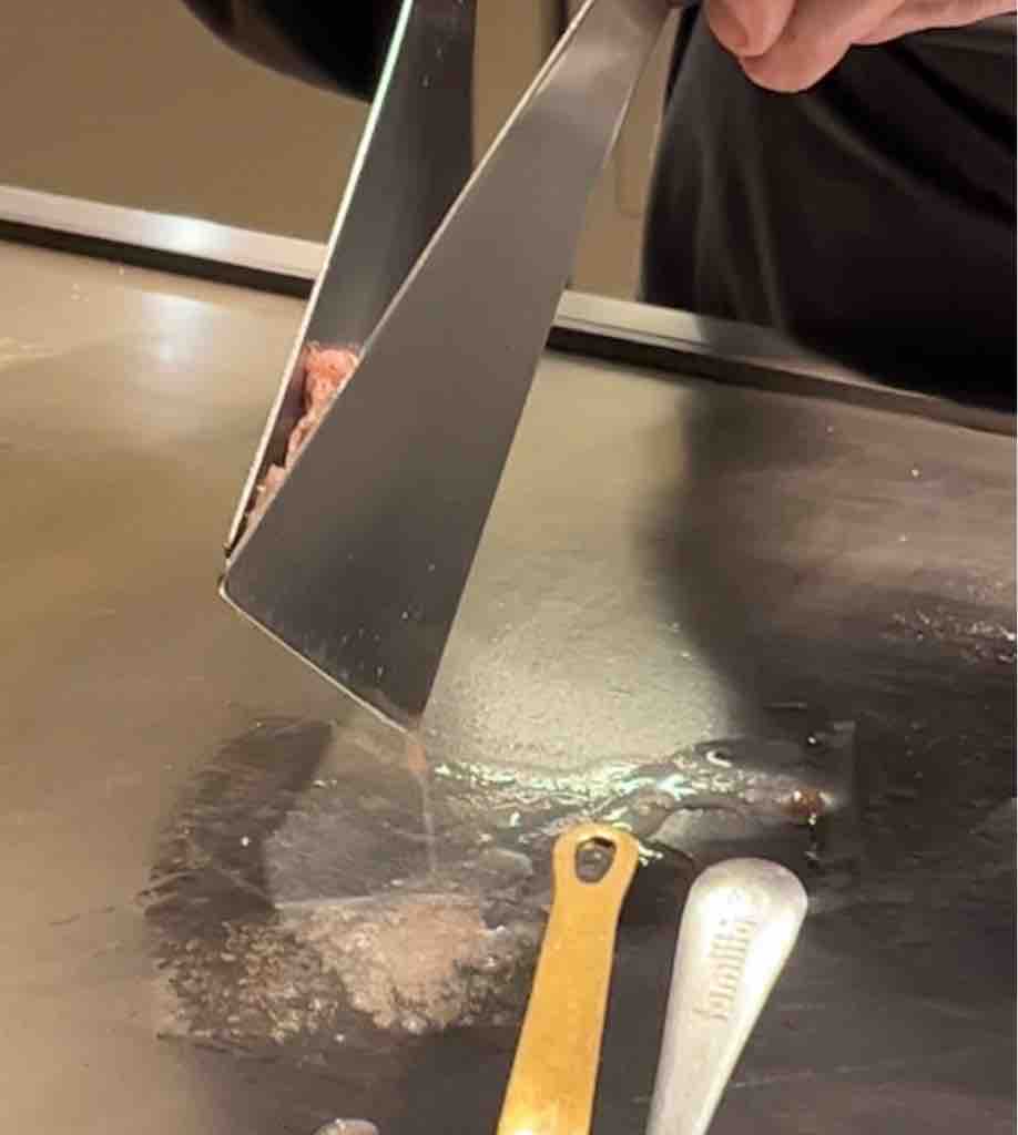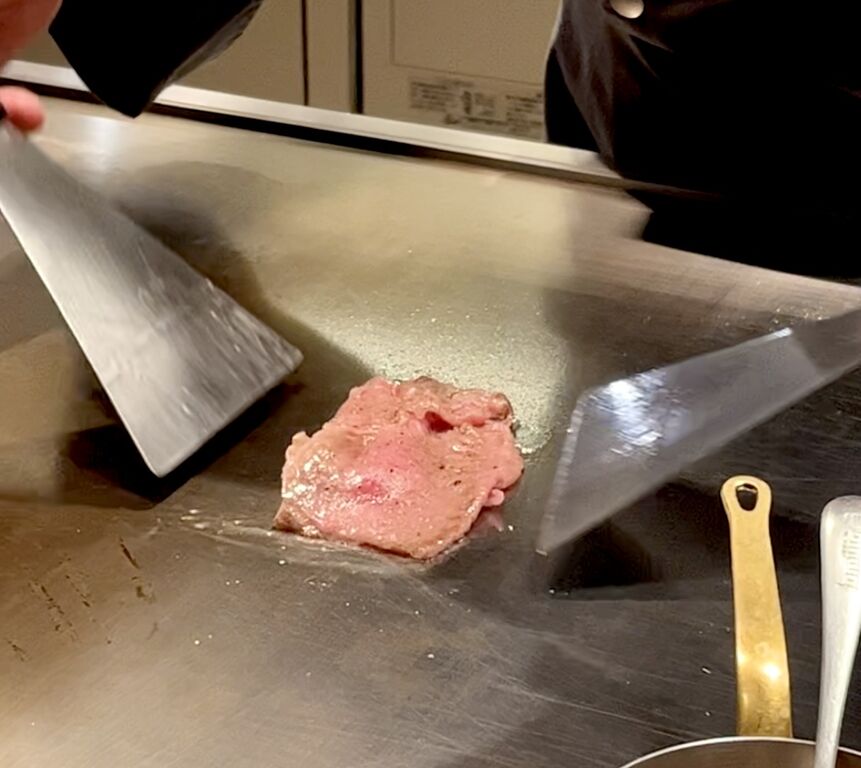 ほんのりピンク色が残る程度に鉄板で焼いて、