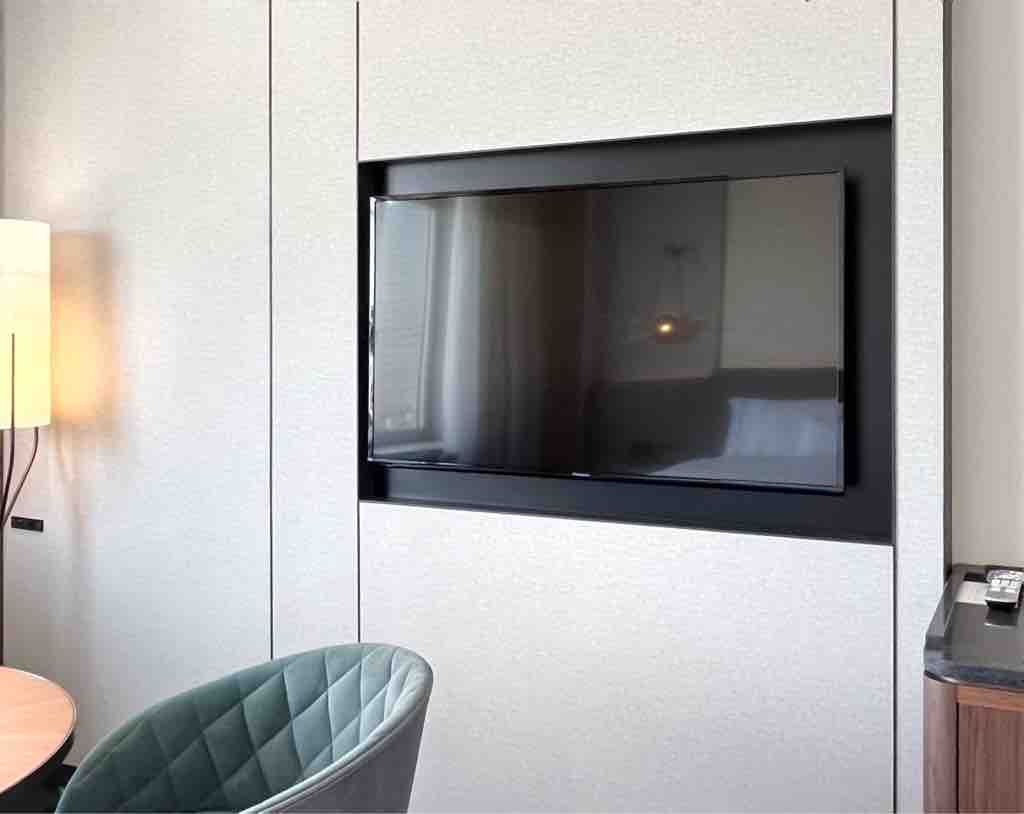 壁に設置の液晶テレビも導入。