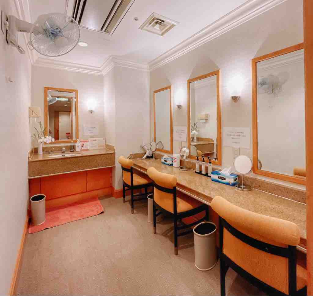 洗面コーナーには基礎化粧品やドライヤーが置いてあります。