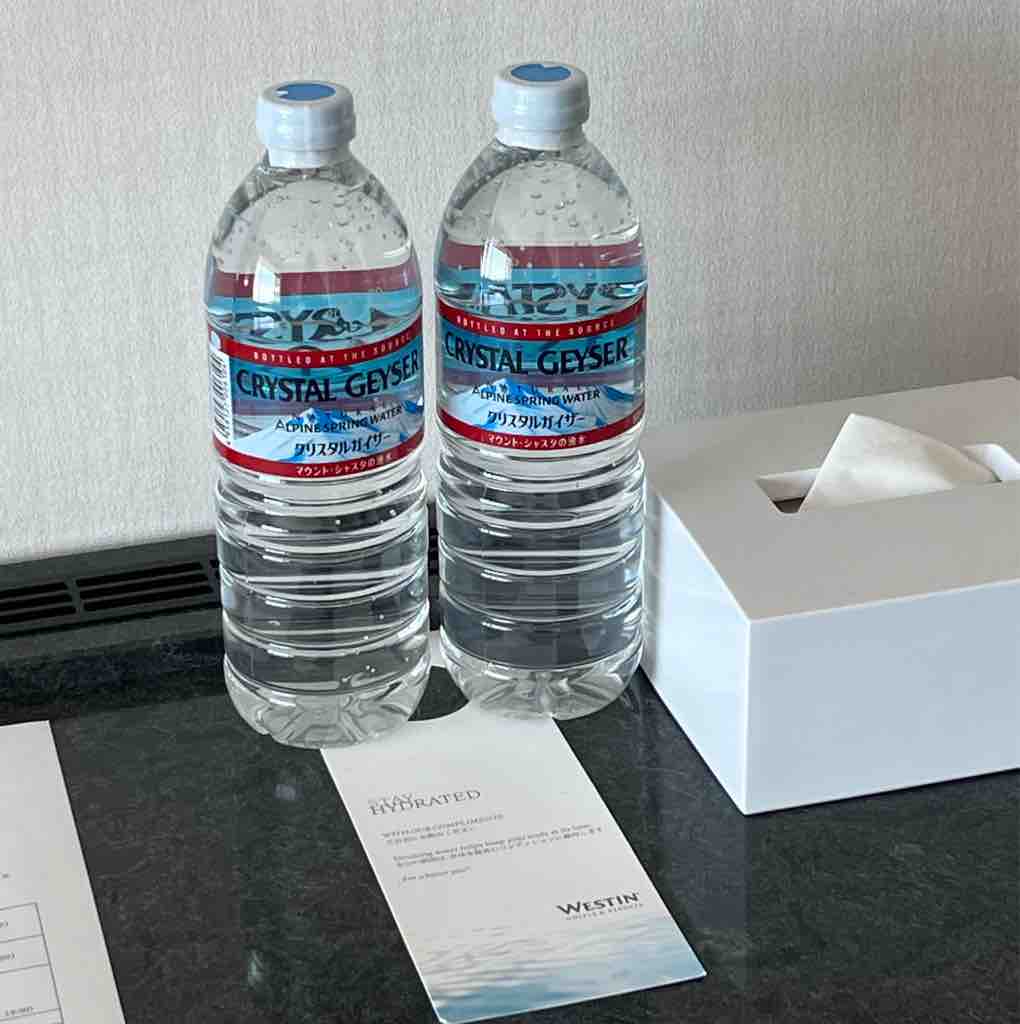 無料のお水が2本あります。