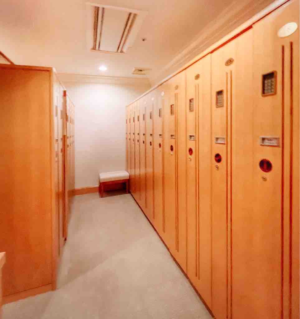 ロッカールームとマッサージ機のある休憩ルーム。