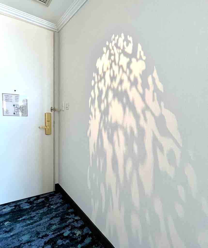 部屋に入ると、木もれ日を演出した照明が優しく壁を照らしていました。