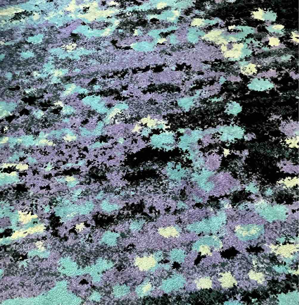 カーペットの色柄は、川の流れをイメージしたブルーがベース。濃淡によって水面のきらめきを表現。