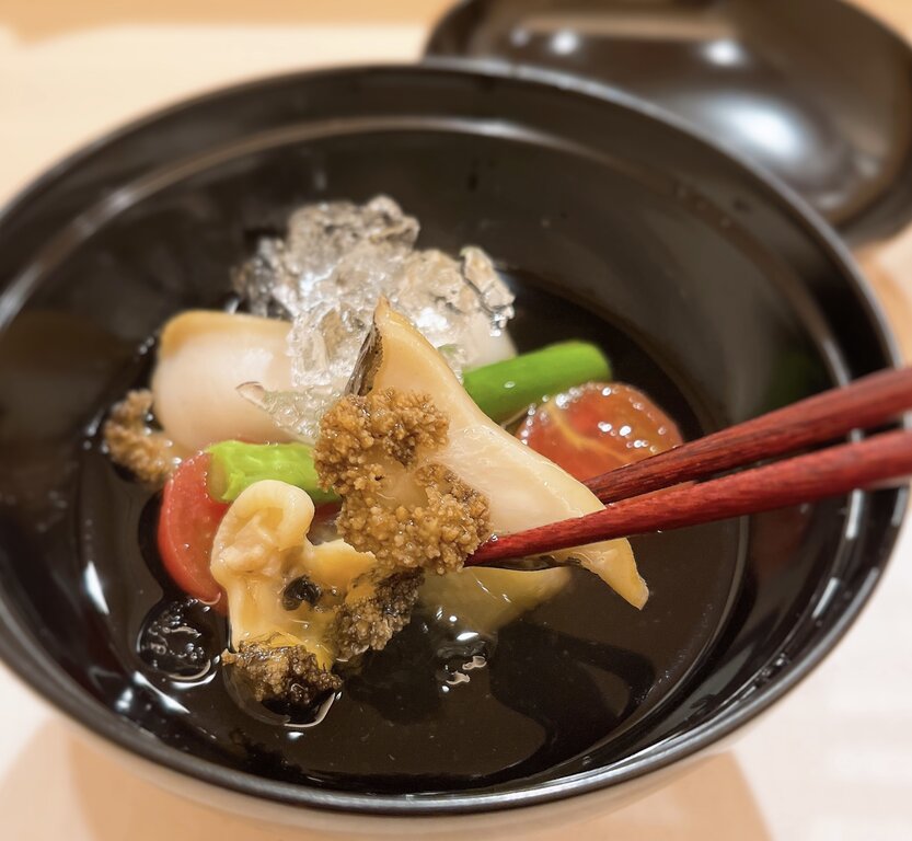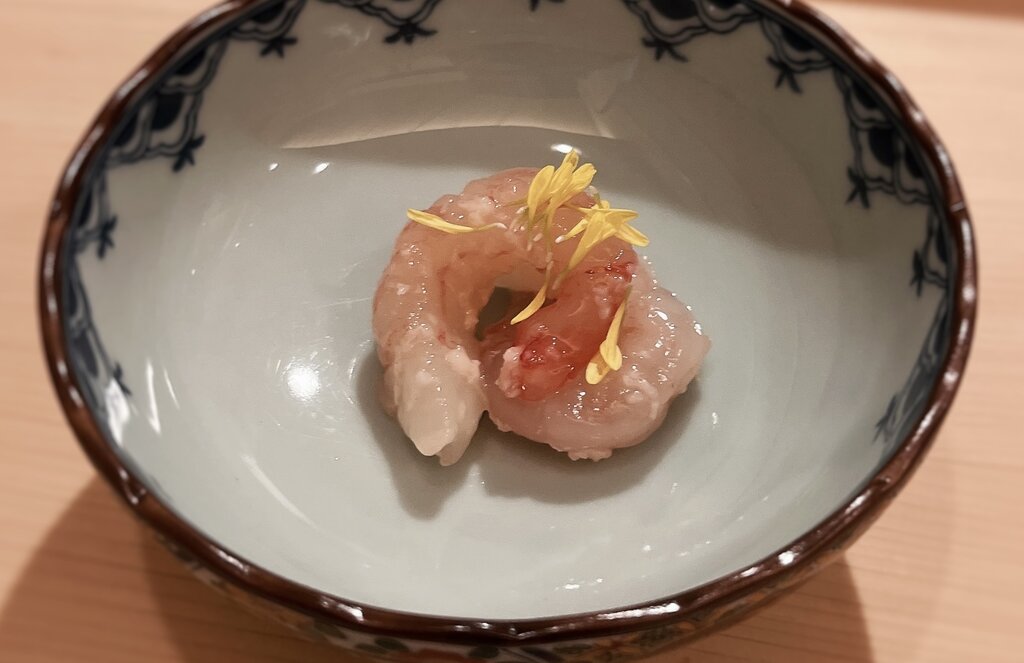 ぷるぷるの甘海老。ほんのりとした甘みには蜂蜜を使用とのこと。