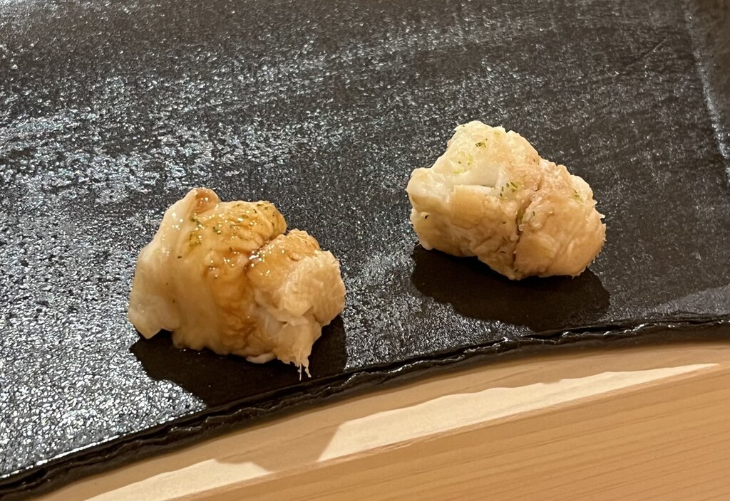 フレッシュな食感と内臓のミルキーさの両方が味わえるよう縦にカット。