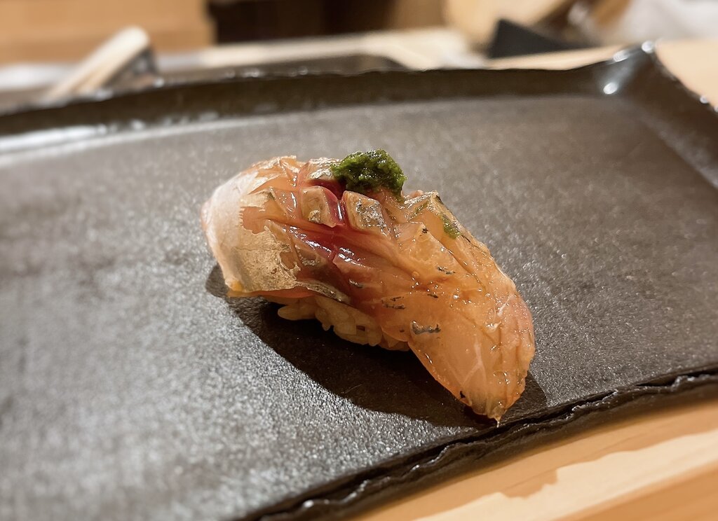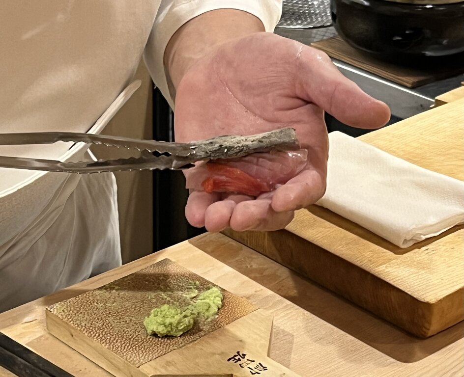 店名には「赤酢」とありますが、シャリは赤酢と白酢を、素材に合わせて使い分けていると聞き驚きました。