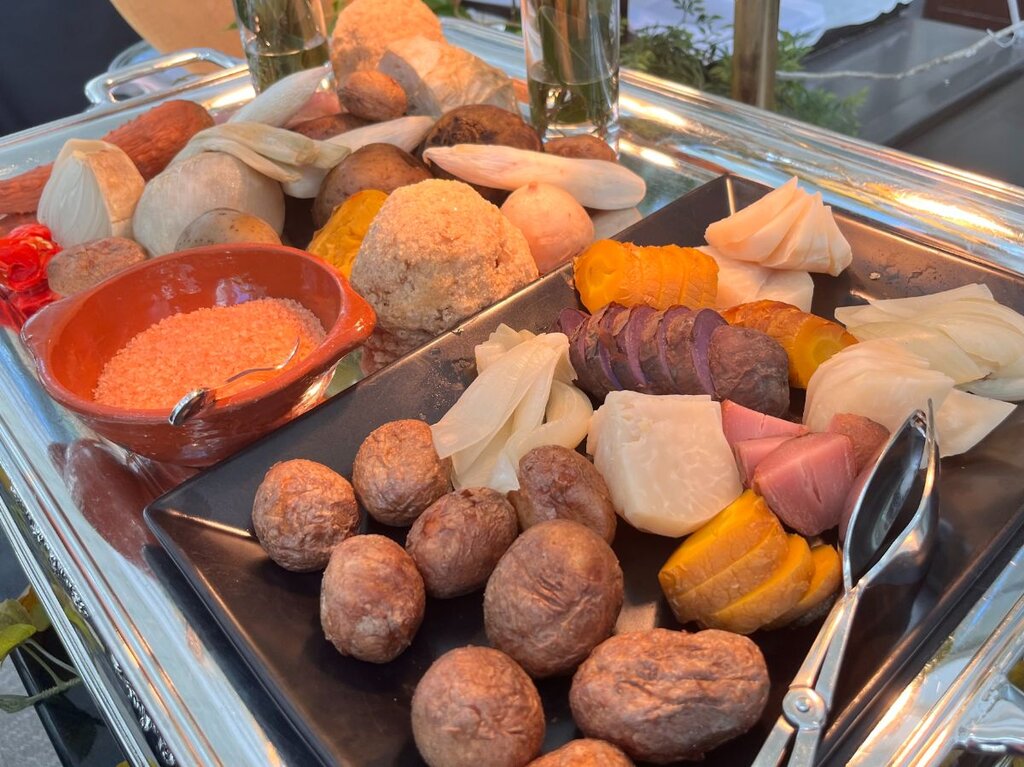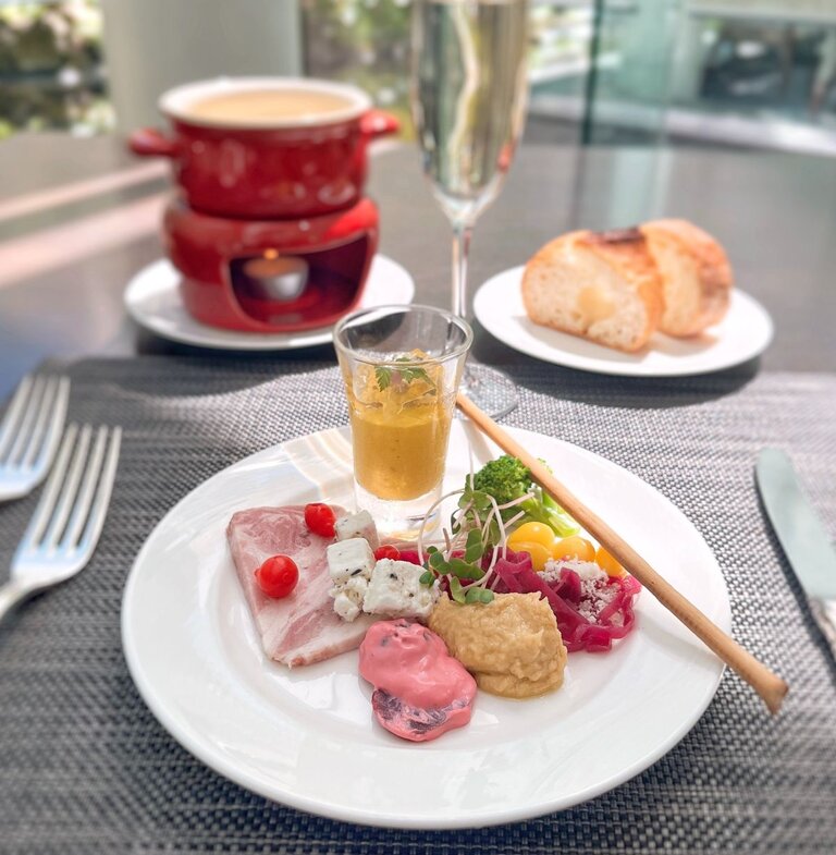 野菜やパン、シャルキュトリーにラクレットチーズをとろーり。