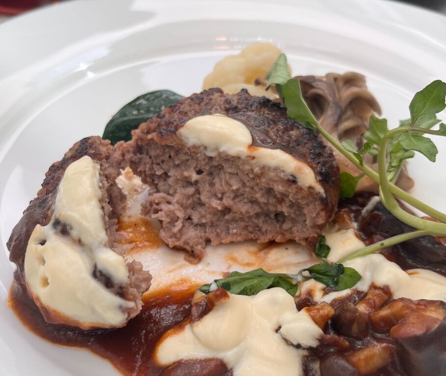 - 黒毛和牛と霧島山麓豚のハンバーグ【+1,000円】