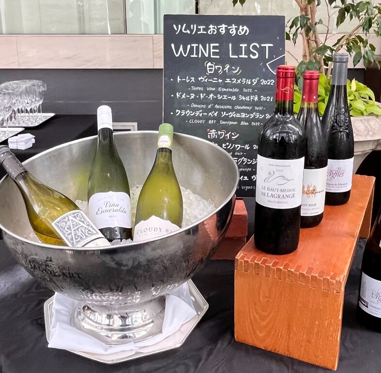 オプションですが、お酒が好きな方にはソムリエがセレクトしたワイン(赤・白・スパークリング)のフリーフローがおすすめです。