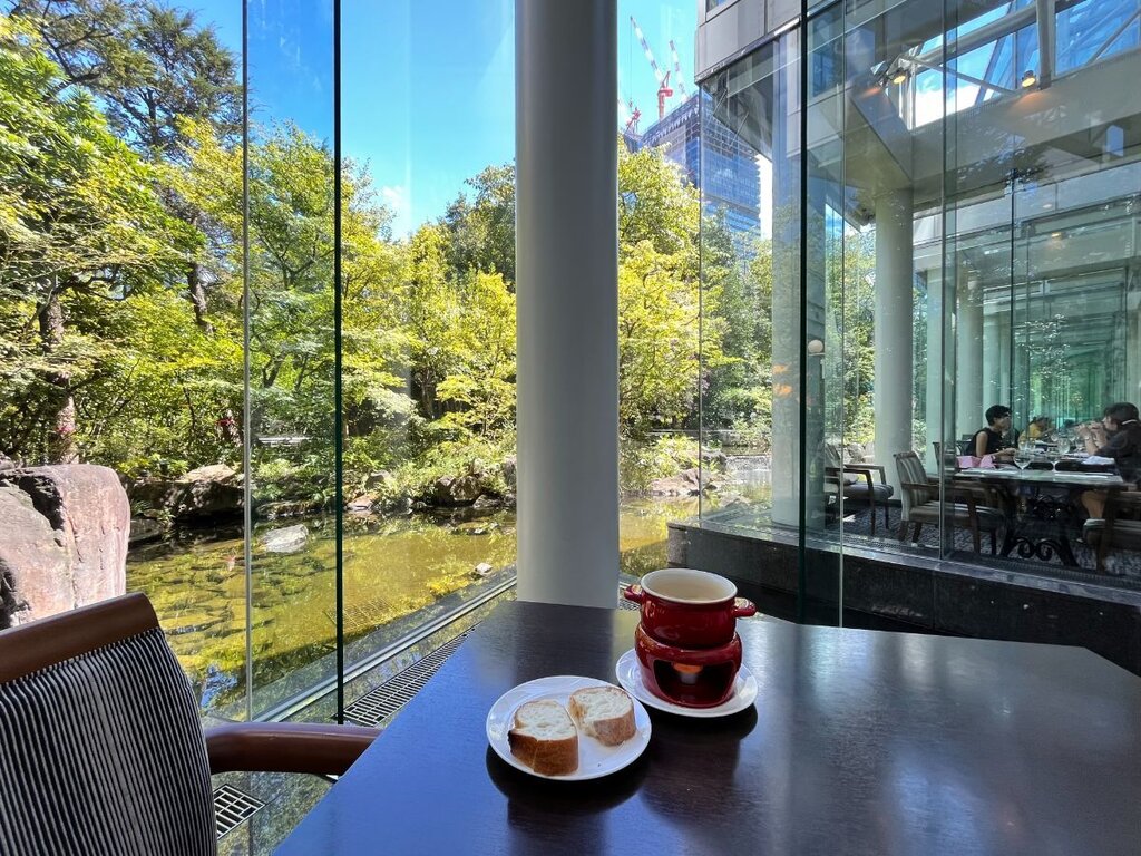 3フロア吹き抜けのガラス張りのアトリウムからの自然光、緑と水辺も眺めながら、お一人でもグループでもゆったりとランチタイムを過ごしてください♪ディナーもありますよ。