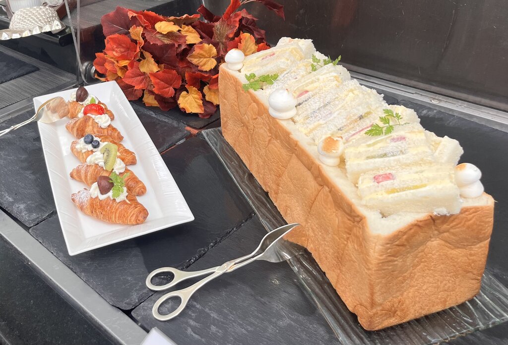 パン一斤をくり抜いてフルーツサンドイッチを詰め込んだ「パン・シュープリーズ」。