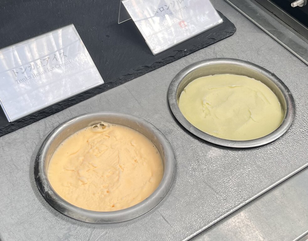 アイスもいつもおいしくて、今回はトンカ豆とメロン。