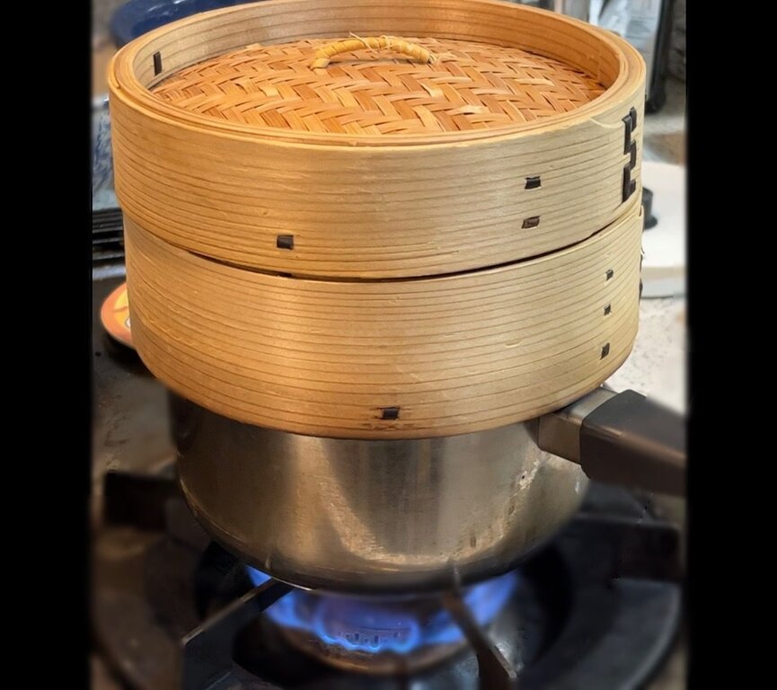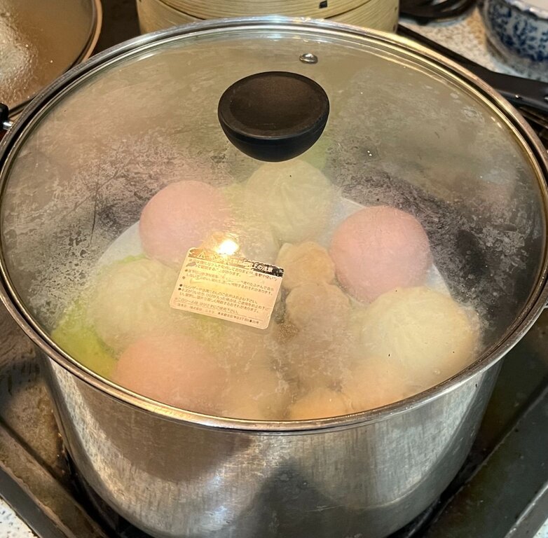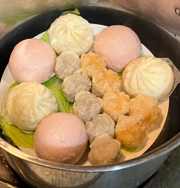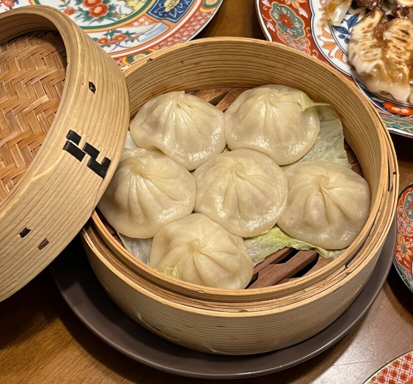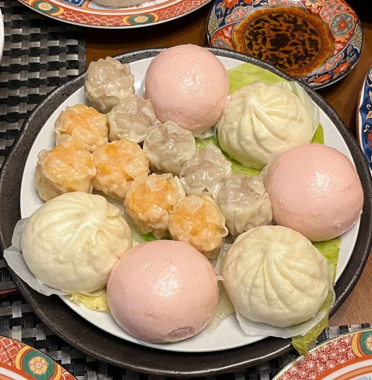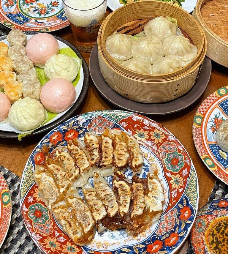 青菜と卵の炒め物などを付け合わせてまるで飲茶パーティー。