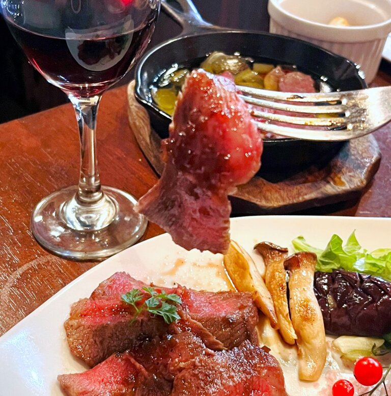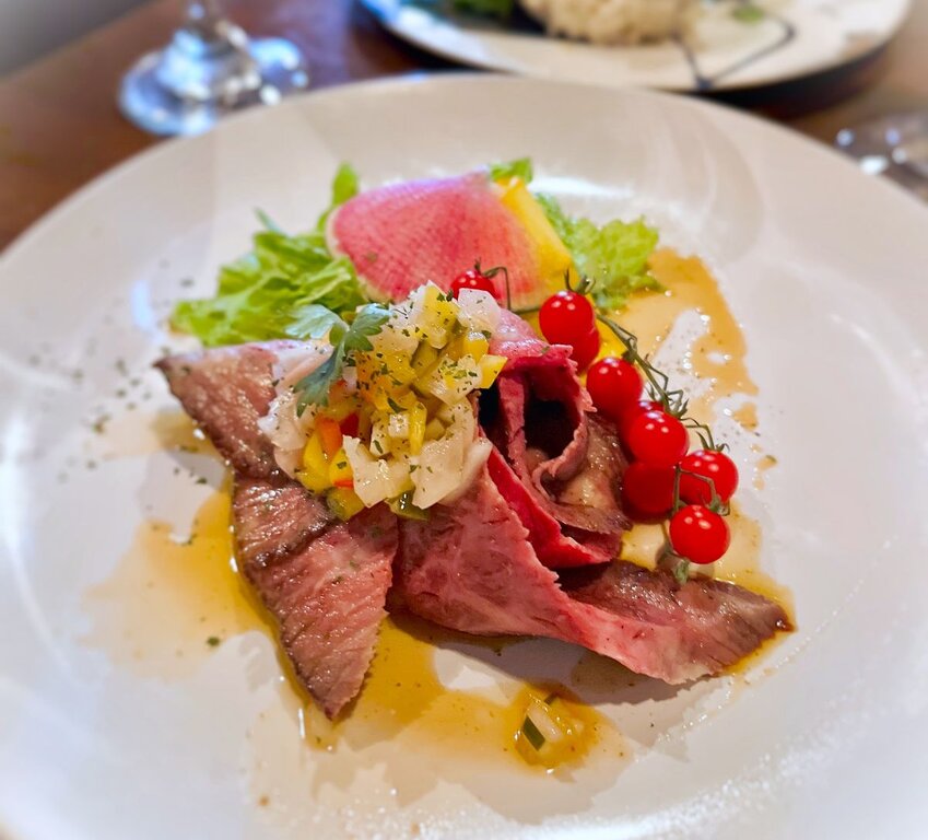 おしゃれな盛り付けのお料お肉のボリュームもすごくて