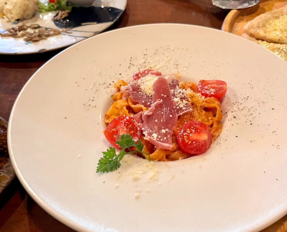 生ハムとフレッシュのトマトパスタ(生ハム分厚い)