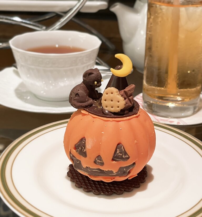 チョコレート細工はカボチャのジャックオランタンに🎃魔女の使いの黒猫🐈⬛