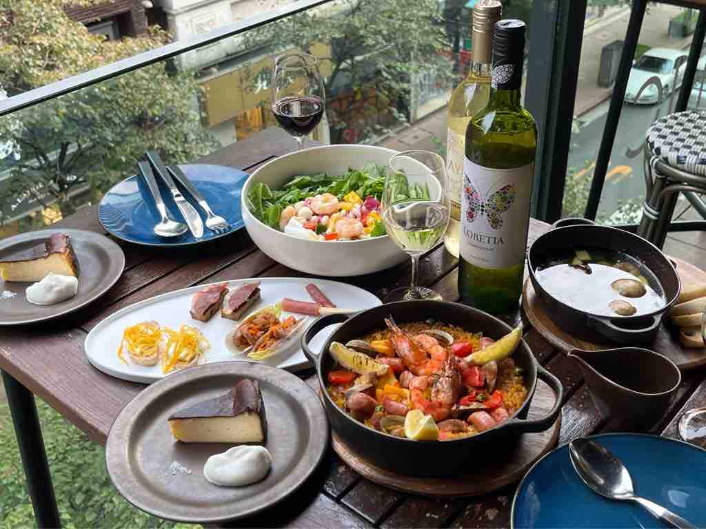 スペイン料理のコースとスペイン産の5種のワイン90分フリーフロー付きプランを満喫。